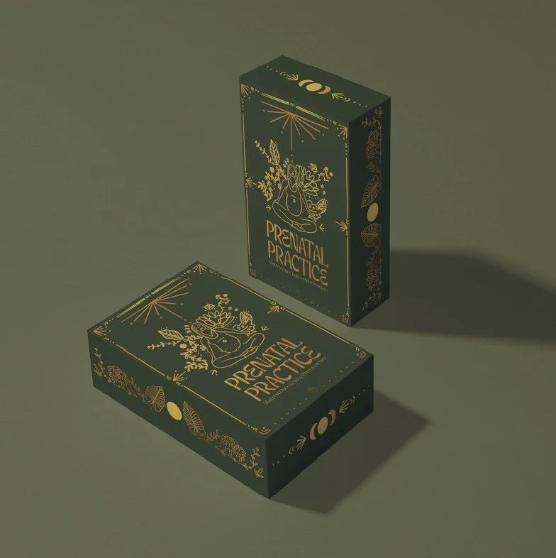 A ritual companion for your pregnancy. Each card offers postures, affirmations, and breathwork to anchor you in presence and connect with your baby.